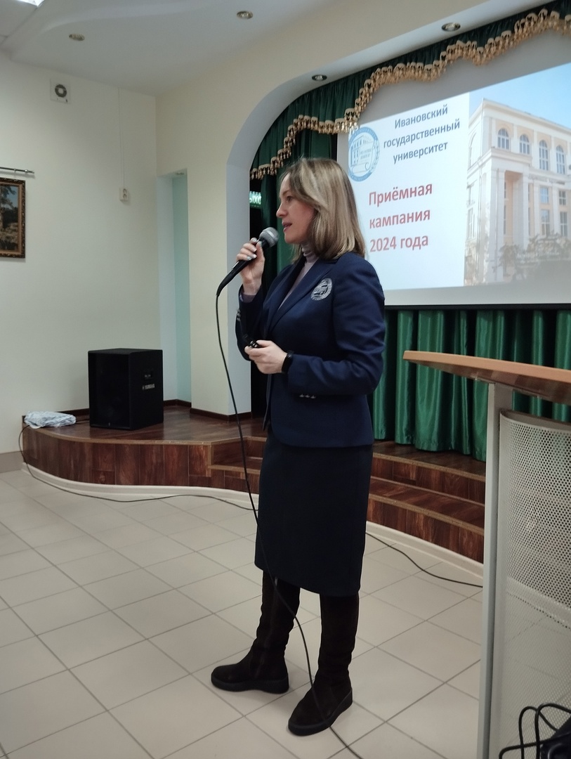 На базе МБОУ СОШ №12 состоялась встреча со старшеклассниками г.о. Вичуга. Начальник Центра профессиональной ориентации и содействия трудоустройству выпускников ИвГУ «Карьера» Ольга Олеговна Коробова начала разговор с вручения памятных значков, посвященных 50-летию ИвГУ, выпускникам университета - руководству школы и представителям отдела образования администрации г.о. Вичуга.