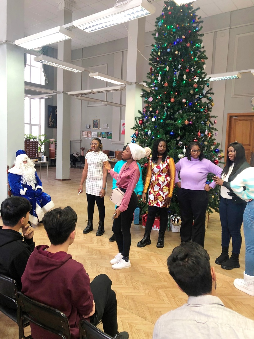 Ребята из более 20 стран мира стали участниками подготовки праздничного русского стола и концертной программы. В разгар праздника к ребятам вышел Дедушка Мороз (доцент ЦРиМО Р.Н. Канафиев). Начались конкурсы, песни, хороводы. Слушатели исполнили песни на русском и на родном языках, стали участниками викторины и различных конкурсов. После боя курантов всех пригласили к столу отведать салат оливье, приготовленный студентками, мандарины, конфеты. Все участники праздника получили подарки от Деда Мороза.