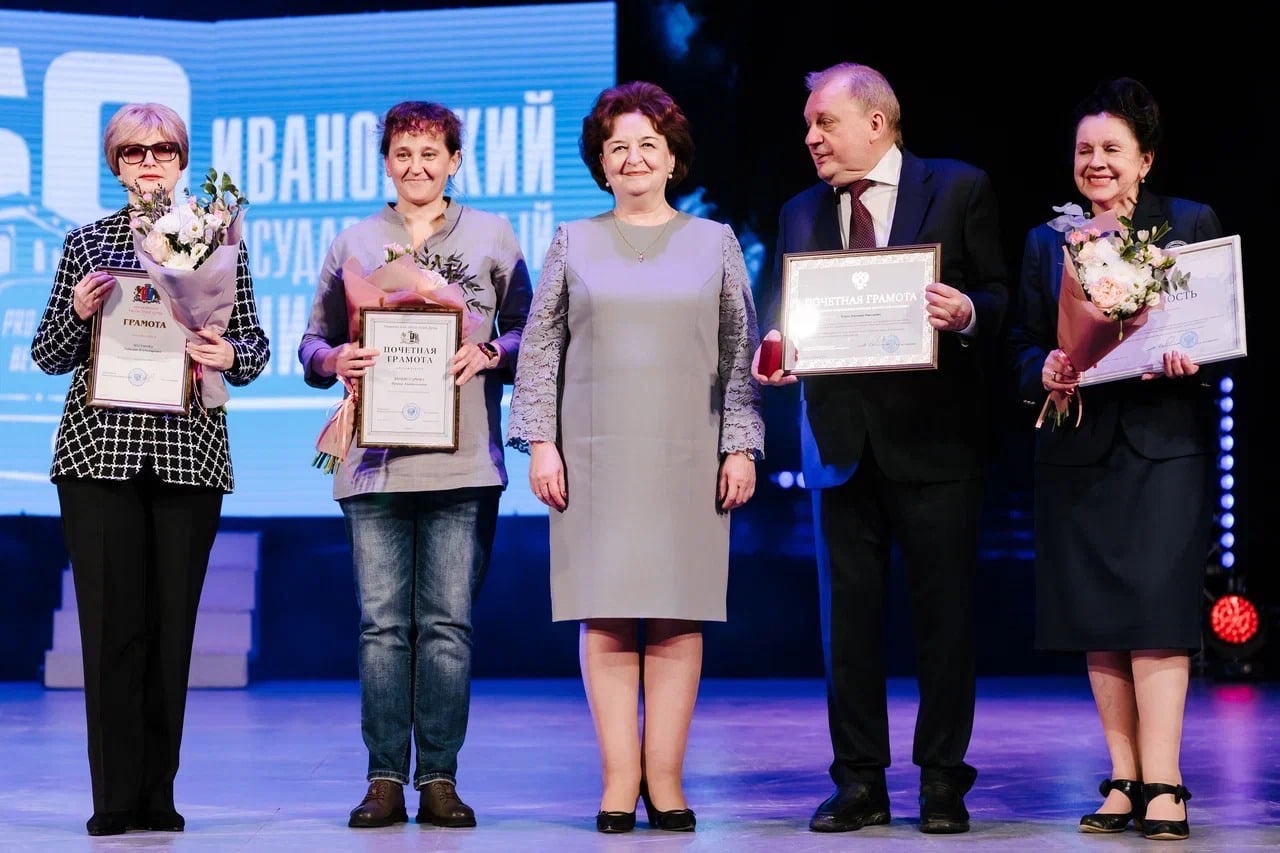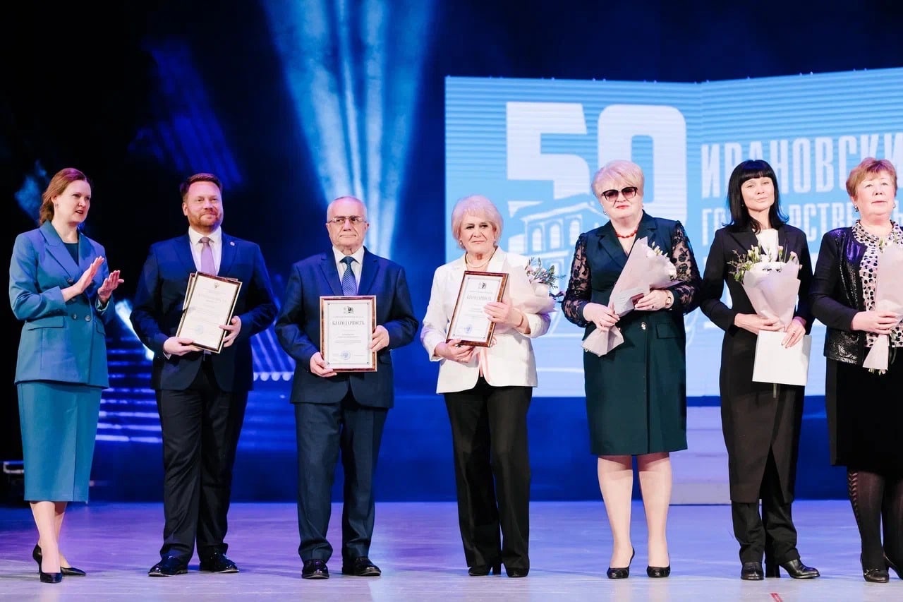 К словам поздравлений также присоединились первый заместитель Председателя Правительства Ивановской области Людмила Дмитриева, директор Департамента образования и науки Ивановской области Ольга Антонова, председатель Ивановской городской Думы Александр Кузьмичев. Приглашенные гости поблагодарили преподавателей учебного заведения за большой вклад в развитие науки и высшей школы, верность своему делу, энтузиазм и подвижничество. На мероприятии состоялось вручение ведомственных, городских и областных наград.