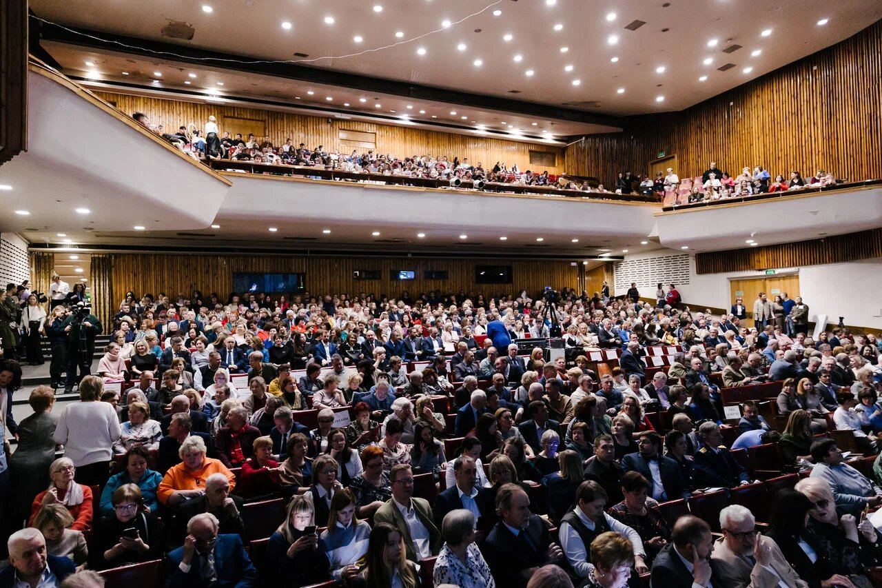 Зал ЦКиО был переполнен – более тысячи студентов, выпускников, преподавателей, партнеров, друзей университета приняли участие в торжестве. Зал был выбран не случайно – именно здесь 50 лет назад состоялось торжественное мероприятие по случаю присвоения Ивановскому пединституту нового статуса. В этом «единстве места» есть глубокий символизм – нерушимая связь вуза со своими истоками, надежная опора на лучшие традиции – для того, чтобы смело идти в будущее. За полвека ИвГУ подготовил около 70 тысяч специалистов, многие из которых добились больших профессиональных и карьерных успехов.
