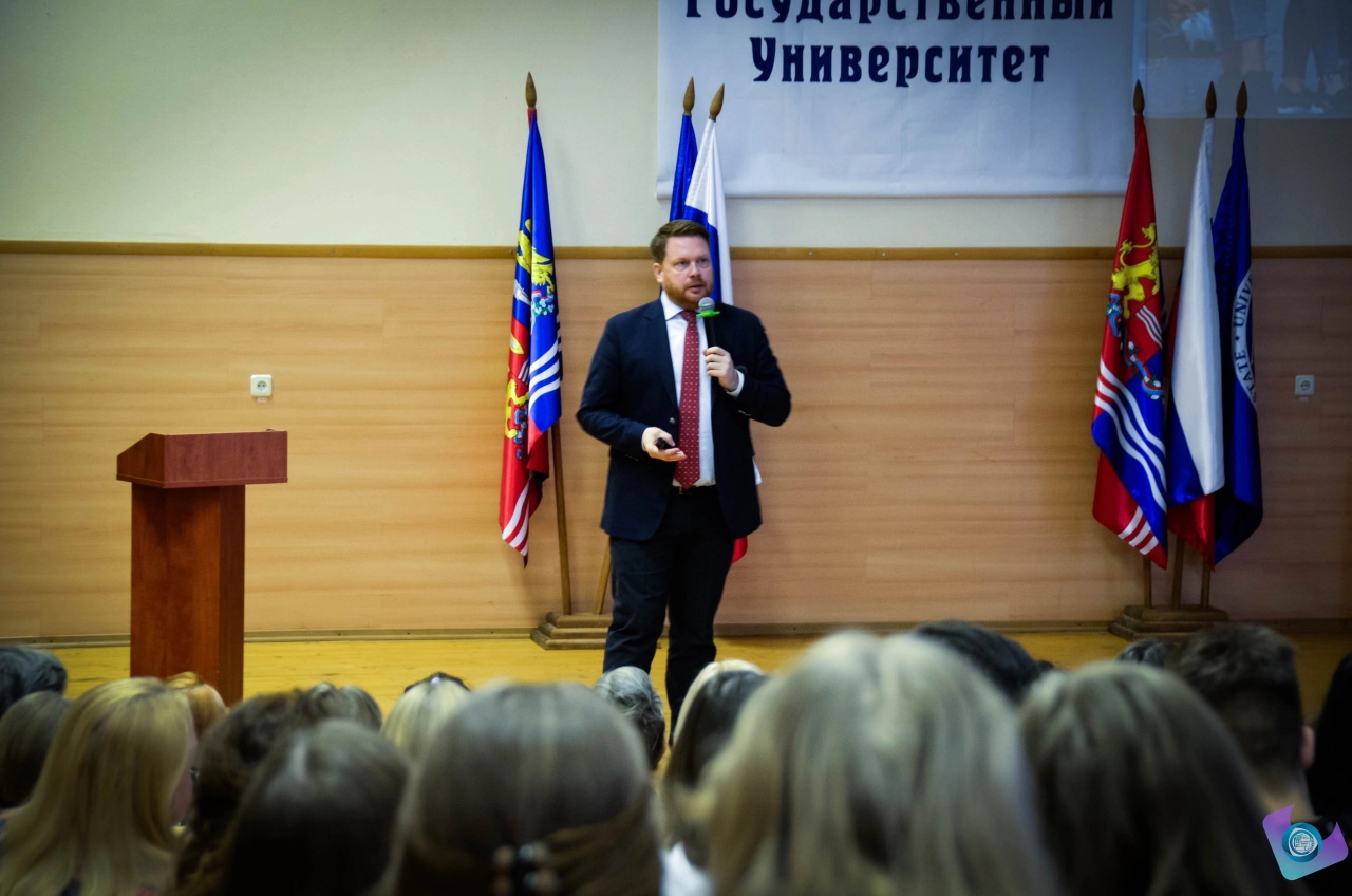 Основную часть мероприятия открыл ректор ИвГУ Алексей Александрович Малыгин. Он подробно познакомил участников с историей и структурой университета, рассказал о преимуществах именно классического университетского образования, а также об особенностях учебной, научной, общественной, спортивной, культурной жизни студентов и имеющихся фондах.