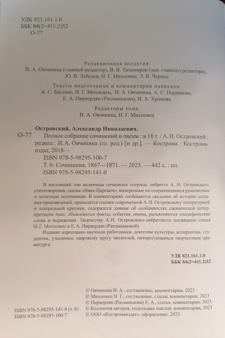 Уникальность 6-го тома, который есть все основания назвать «Неизвестный Островский», состоит в том, что в нем впервые представлены все тексты оперных либретто драматурга, как опубликованные, так и не публиковавшиеся при его жизни. Впрочем, определение «неизвестный» в значительной мере относится к готовящемуся Собранию сочинений Островского в целом: оно должно содержать все тексты создателя русского национального театра, их редакции и варианты, снабженные новыми историко-литературными и текстологическими комментариями.