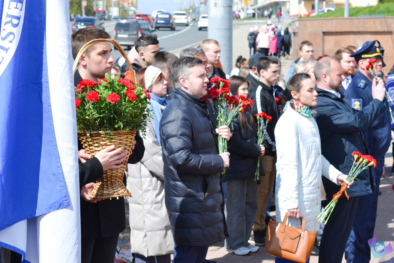 Ректоры вузов, преподаватели, студенты возложили цветы к мемориалу.