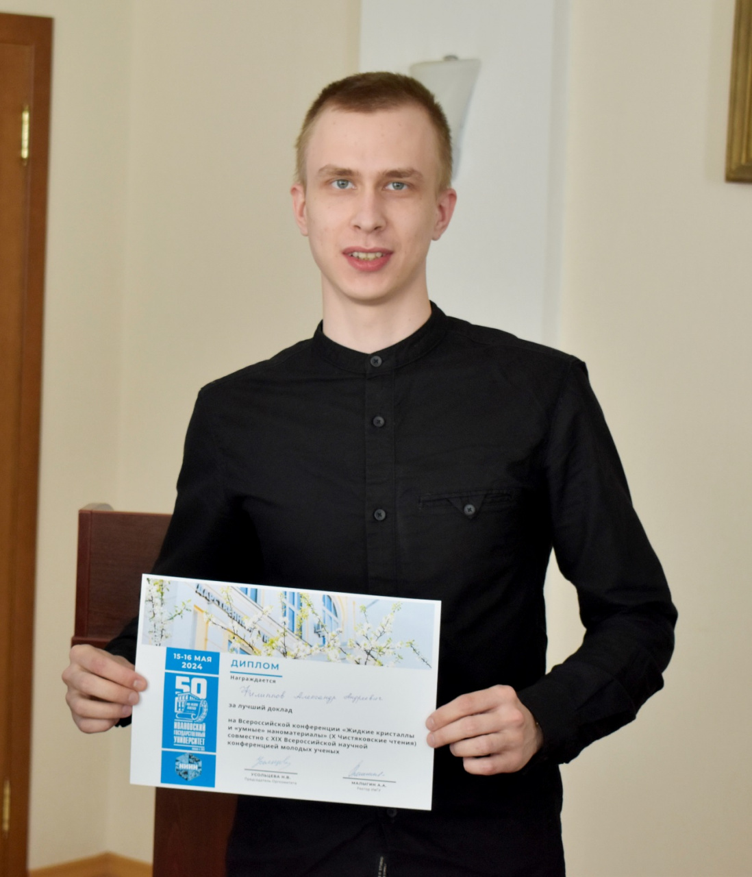 15–16 мая в ИвГУ состоялась Всероссийская конференция с международным участием «Жидкие кристаллы и «умные» наноматериалы (Х Чистяковские чтения) совместно с ХIХ Международной конференцией молодых ученых. Конференция была посвящена трем юбилейным датам: 95-летию проф. Игоря Григорьевича Чистякова (1929–1982 г.г.), основателя в Ивановском педагогическом институте первой в СССР научно-исследовательской лаборатории жидких кристаллов, 60-летию этой лаборатории и 50-летнему юбилею ИвГУ. В Оргкомитет Конференции вошли ученые НИИН и ИМИТиЕН ИвГУ, ИГХТУ, ИХР РАН им. Г.А. Крестова (Иваново), а также ученые НИЦ Курчатовский институт (Москва), МГУ им . М.В. Ломоносова, СГУ им. Чернышевского (Саратов), ИОФ РАН (Москва), ВГУ им. А.Г. и Н.Г. Столетовых (Владимир).