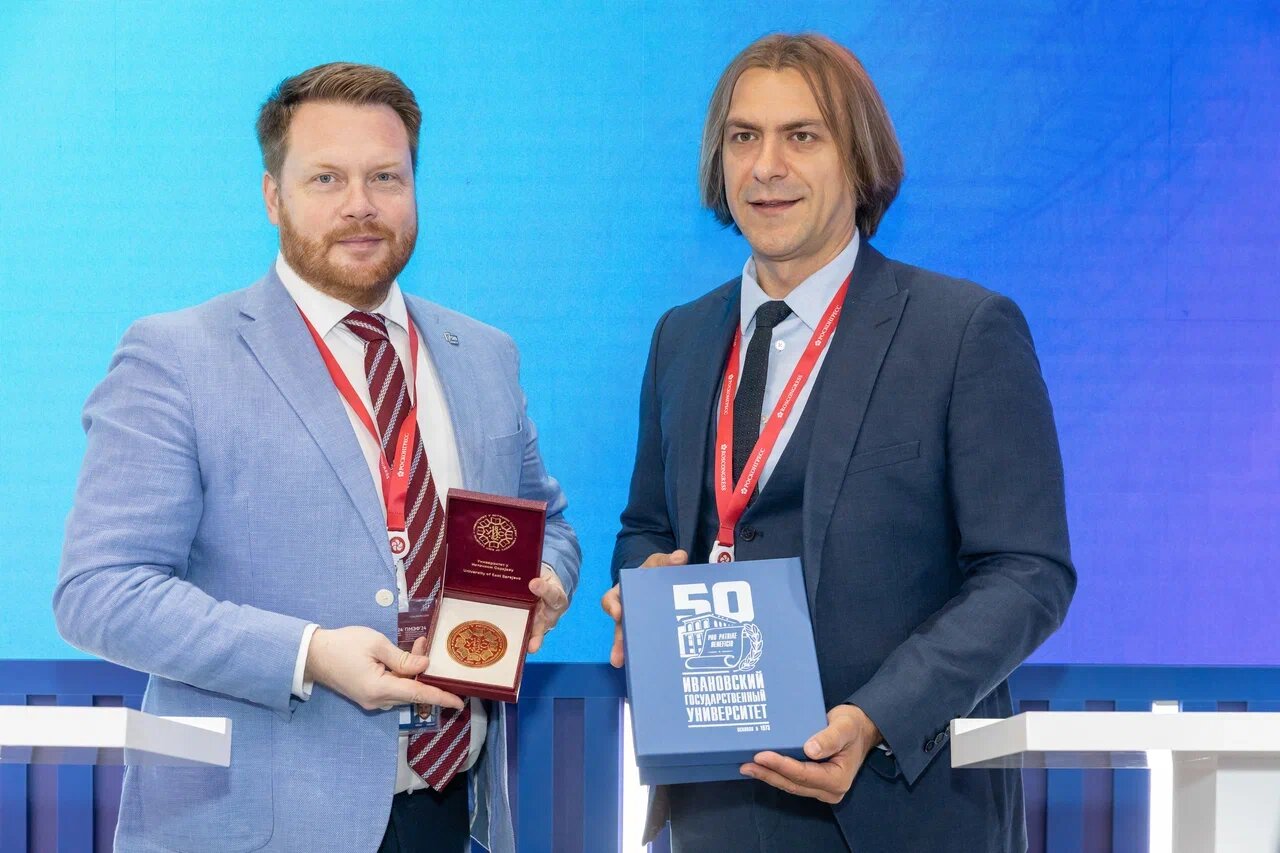 Работа началась с подписания соглашения между ИвГУ и университетом Восточного Сараева (УВС) Республики Сербской (Босния и Герцеговина). Ректор ИвГУ Алексей Малыгин и проректор по международному сотрудничеству УВС Марко Гуталь подчеркнули значимость подписанных на ПМЭФ документов для расширения двусторонних связей.