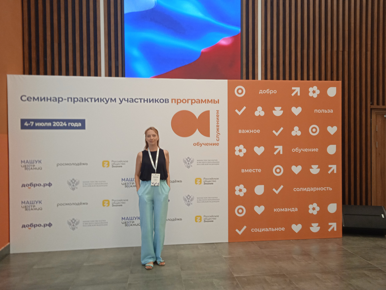 4-7 июля доцент кафедры социологии, социальной работы и управления персоналом Н.С. Рычихина приняла участие в семинаре-практикуме участников программы «Обучение служением», который состоялся в Центре знаний «Машук» в г. Пятигорске.