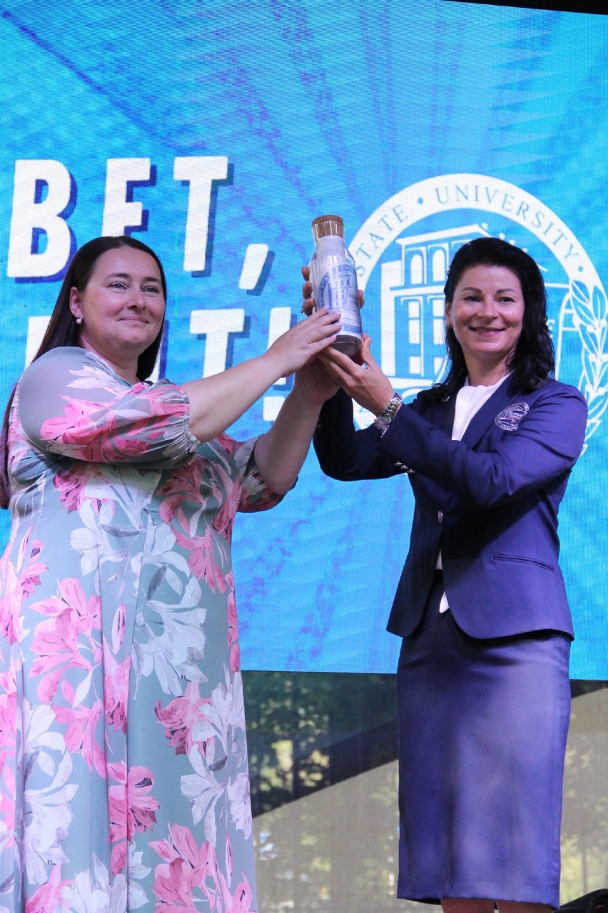 От всей души поздравили первокурсников с началом нового – возможно, лучшего! – этапа их жизни директора институтов ИвГУ С.А. Маник, Т.П. Кустова, И.В. Курникова, декан юридического факультета О.В. Соколова. Они торжественно заложили в «капсулу времени» заранее заготовленное первокурсниками и преподавателями «послания в будущее».