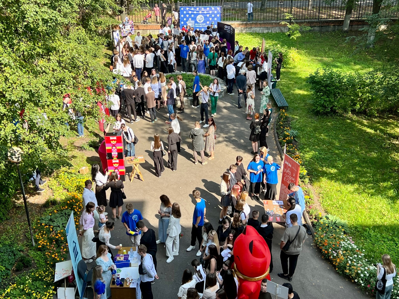 На территории у третьего корпуса для студентов работали фотобудки для памятных снимков. Студенческие организации подготовили развлекательную программу, и их станции работали во время обоих торжественных концертов.