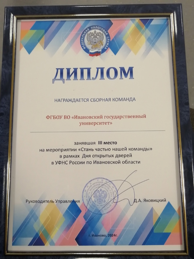 В Управлении Федеральной налоговой службы по Ивановской области в рамках кадрового проекта «Стань частью нашей команды» прошло мероприятие для студентов ивановских вузов. В делегацию от нашего университета вошли студенты ИМИТиЕН и ИСЭН.