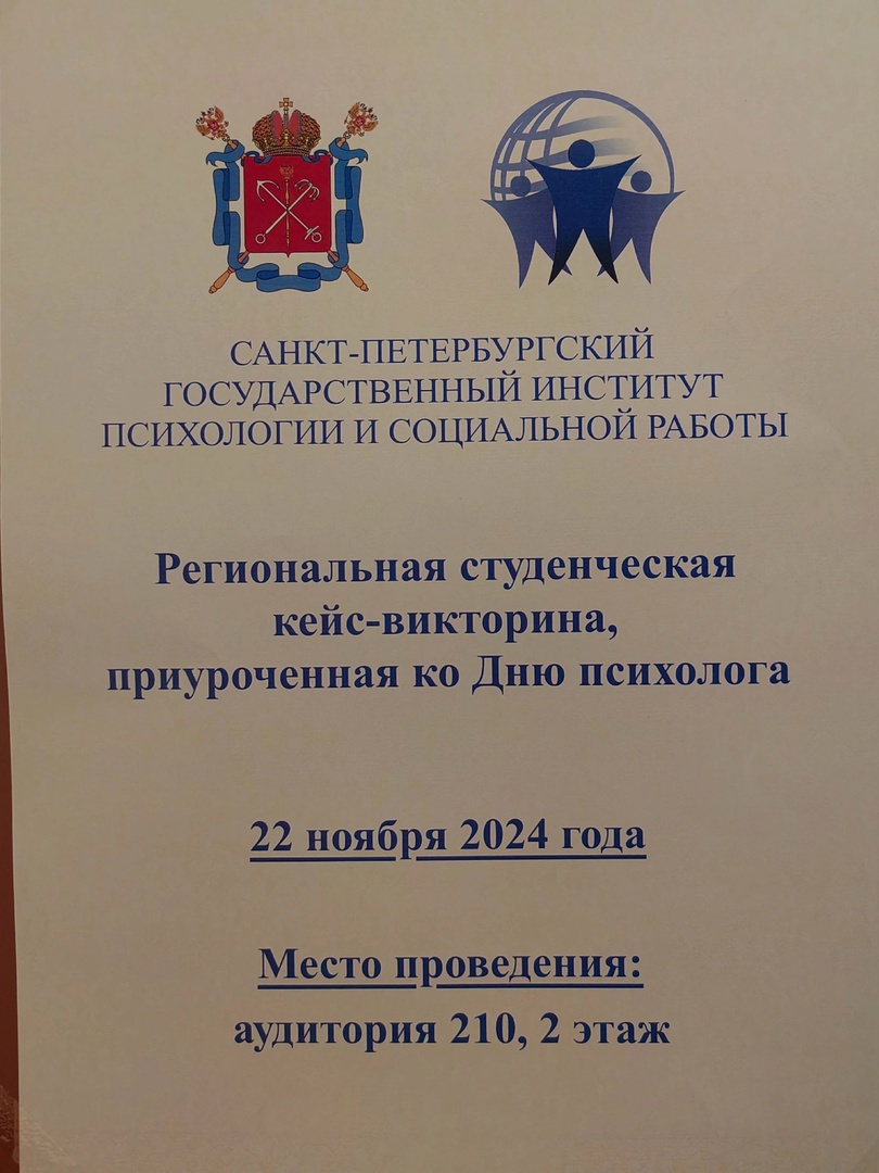 22 ноября в День психолога на базе СПбГИПСР проходил финал Региональной студенческой кейс-викторины по психологии. Цель мероприятия: выявление у обучающихся творческого потенциала, развитие умения выступать на публике и работать в команде, применять теоретические знания по психологии в решении практических задач.