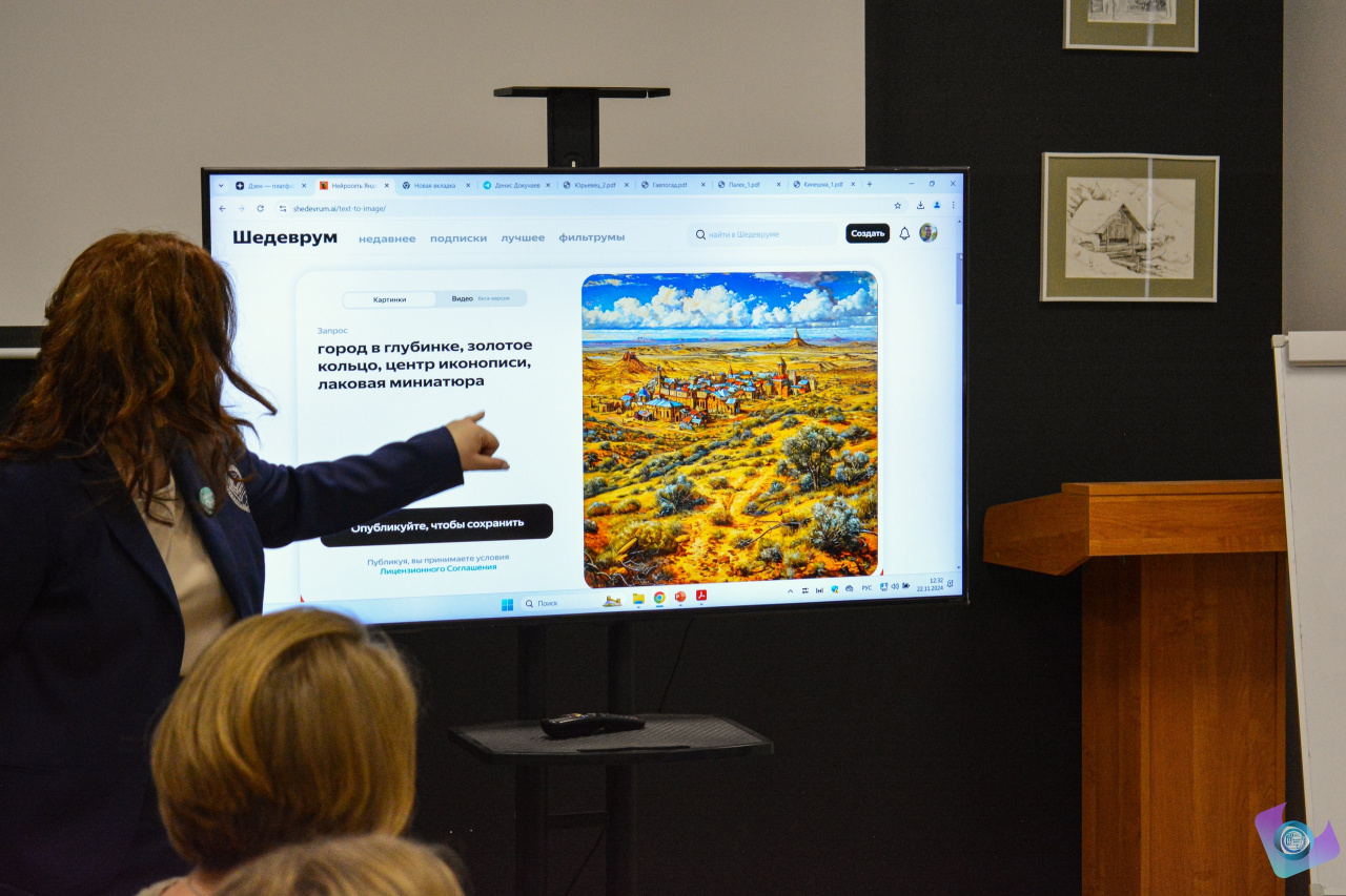 Спикеры Денис Докучаев и Дмитрий Смирнов на станции «Нейрогорода: медиа и историческое проектирование» погрузили ребят в малознакомую атмосферу жизни малых городов региона, разобрали алгоритм формирования образов территорий, научили работать с ними в нейросети «Шедеврум».