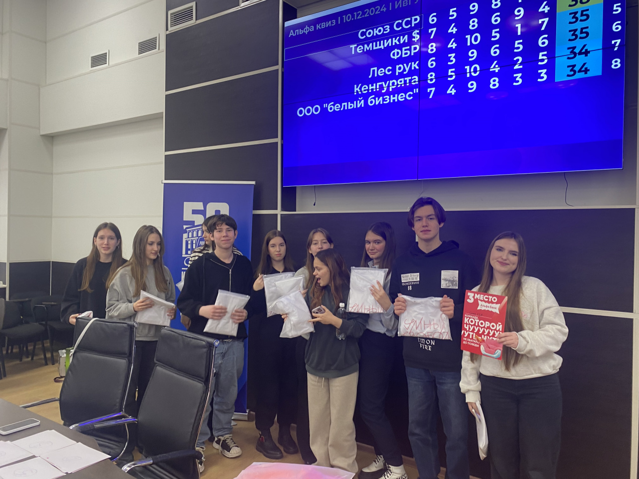 Победу в этом интеллектуальном сражении одержала команда «Авантюристы»; на втором месте – «Рублики»; третье место заняла команда «Союз ССР». Но поздравляем все команды с участием – вы все были великолепны! Каждый из вас показал свои знания и умения, и это сделало игру еще более захватывающей.