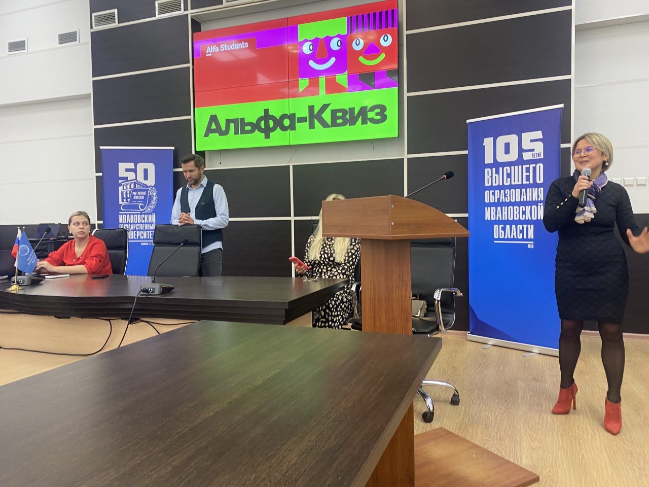 Мероприятие открыла директор Института социально-экономических наук Курникова И.В., поблагодарила всех присутствующих за выбор дополнительной профессиональной программы «Основы финансовой грамотности» и рассказала о развитии партнерских отношений с Альфа-Банком. Ирина Валерьевна поприветствовала представителей банка, передав слово директору по розничному бизнесу регионального офиса Альфа-банка (Иваново) Коркуновой М.Ю., которая заверила студентов в том, что Альфа-Банк все делает и будет делать для развития сотрудничества с ИвГУ и профориентационной работы со студентами, дав старт Альфа-Квизу.