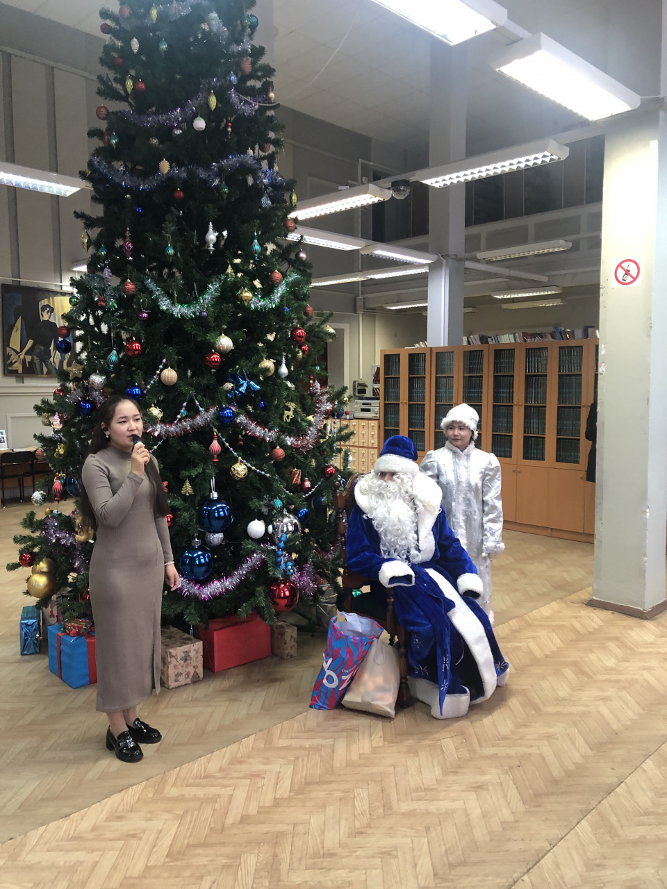 24 декабря читальный зал ИвГУ радушно распахнул свои двери иностранным слушателям подготовительной программы. Ребят встретил Дедушка Мороз, новогодняя ёлка и подарки. Студенты из Конго продемонстрировали танец, спели песню, а студентка из Туркменистана спела песню на русском языке, которую она специально выучила к празднику. Весёлые конкурсы, песни и танцы, бой курантов, мандаринки, хоровод очень понравились ребятам. Они пожелали друг другу счастливого Нового года!