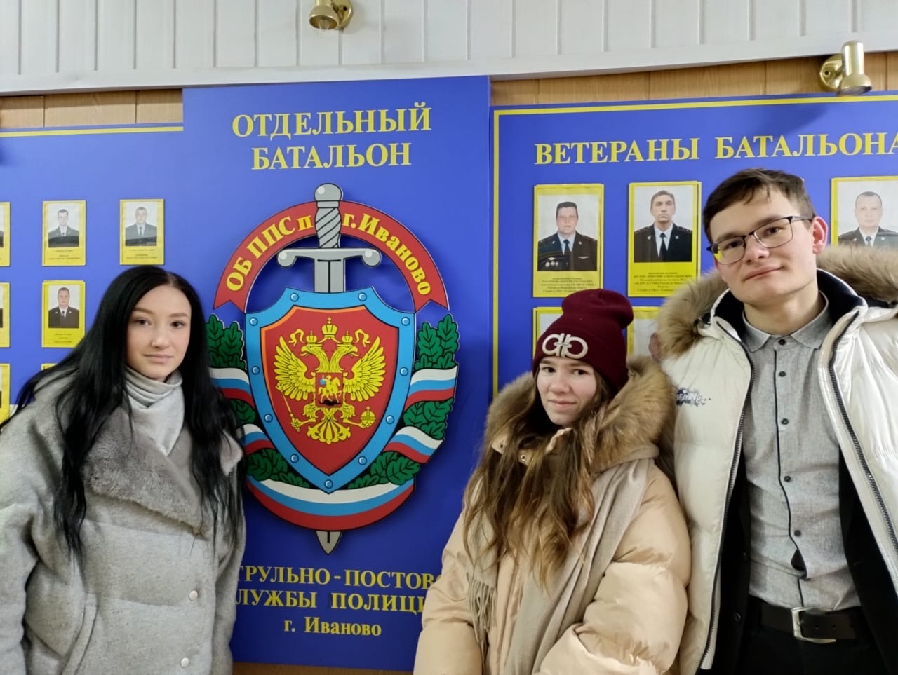 23 января студенты посетили батальон патрульно-постовой службы УМВД по Ивановской области. Его сотрудники провели экскурсию по батальону. Майор полиции Ю.В. Мингазов рассказал о традициях подразделения и о специфике службы, показал специальные средства, которыми оснащается каждый сотрудник, когда заступает на дежурство. В процессе общения Юрий Владимирович поделился профессиональным опытом и интересными случаями из практики.