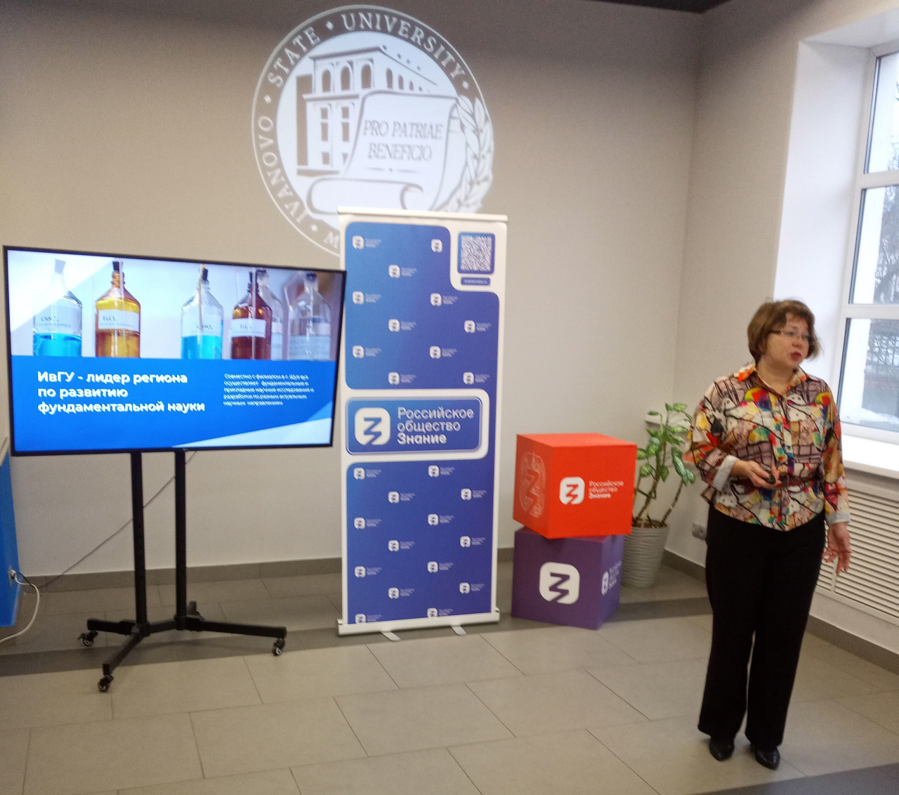 Директор Института математики, информационных технологий и естественных наук Т.П. Кустова в приветственном слове рассказала о том, какие связи устанавливает университет со школами региона, какие задачи решает консорциум вузов «Иваново», о перспективах создания кампуса в самом сердце областного центра. Также Татьяна Петровна очень подробно рассказала обо всех образовательных программах, реализуемых в ИМИТиЕН.
