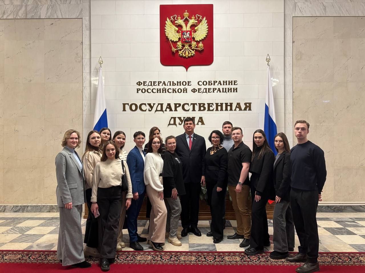 Поприветствовал ребят Виктор Владимирович Смирнов, депутат Государственной Думы и Председатель Ивановской областной организации Общероссийского профсоюза образования. В рамках визита в Государственную Думу студентам рассказали о ее истории от Российской Империи до настоящего времени, организовали экскурсии в штабы всех действующих фракций и познакомили с экспозицией, включающей информационные стенды и экспонаты высокой политической и гражданской ценности.