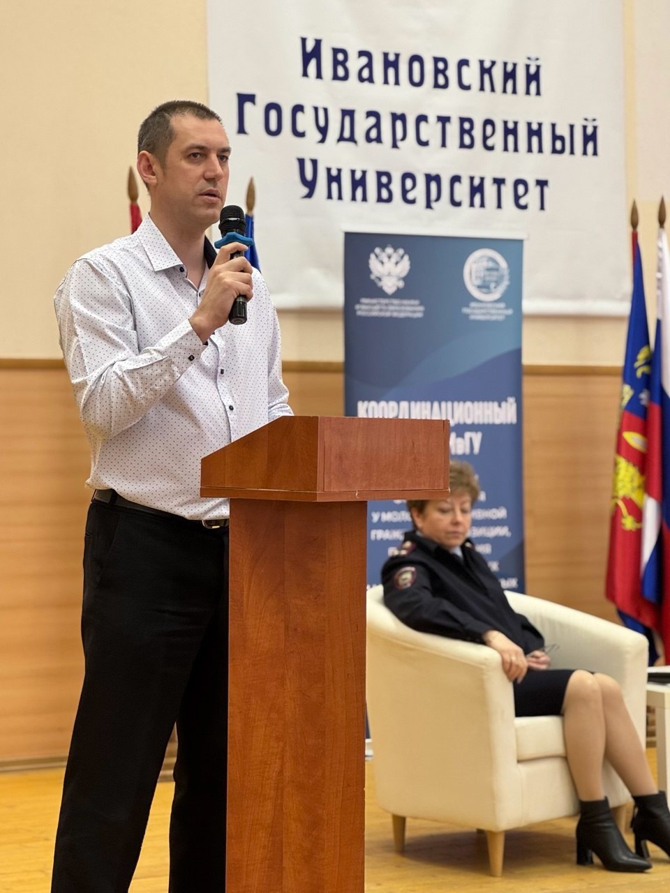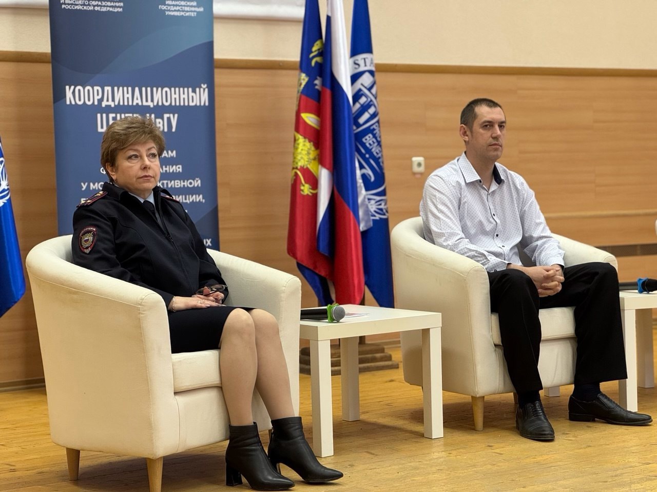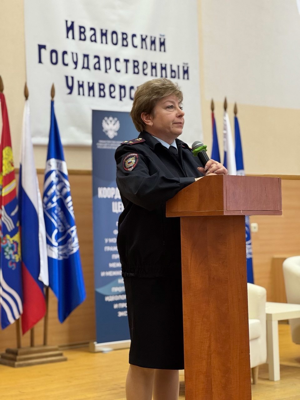 Начальник отдела разрешительно-визовой работы УВМ УМВД России по Ивановской области О.Ю. Савина раскрыла темы миграции иностранных студентов, подробно остановившись на законодательных нормах, которые необходимо соблюдать на территории РФ.