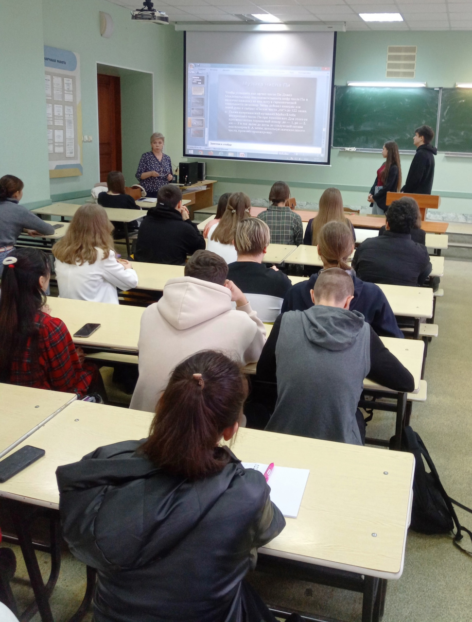Преподаватели и студенты собрались в этот праздничный день в 303 аудитории. Мероприятие открыл доцент кафедры фундаментальной математики Д.В. Туртин. Он поздравил всех присутствующих с этим замечательным профессиональным праздником. Доцент кафедры фундаментальной математики Е.В. Еремина совместно со студентами Матвеем Волокушиным и Александрой Мельниковой подготовили рассказ-презентацию об интересных фактах о числе «Пи».