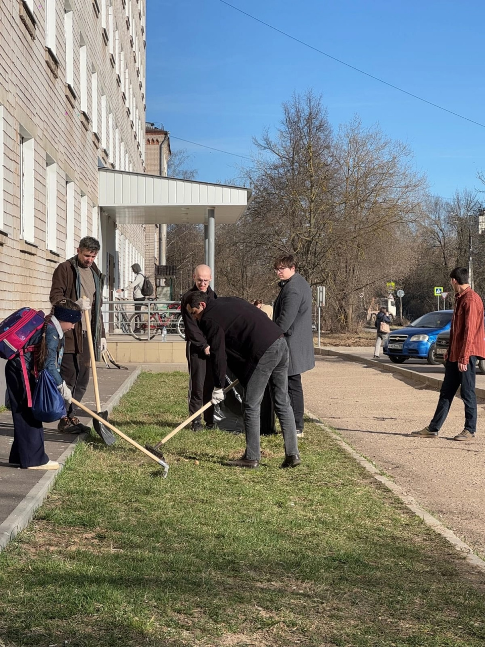 В общежитии №4 прошёл субботник — ежегодное мероприятие, объединяющее жильцов для уборки территории. В этот день собрали мусор, подмели дорожки и сгребли листву. Студенты работали вместе, помогая друг другу, что создало атмосферу взаимопомощи и дружбы.