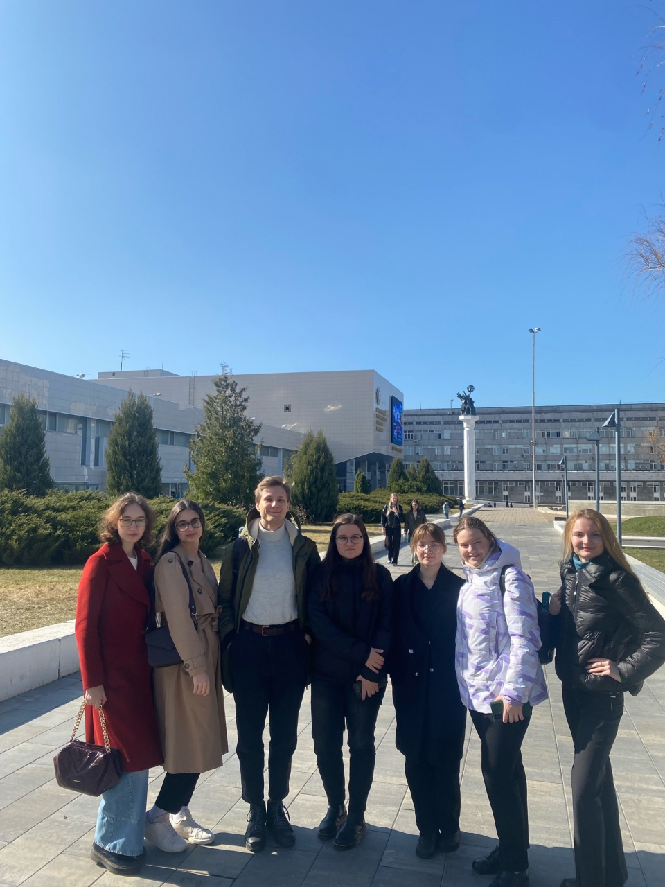 М.Е. Ширяева: «На четвертом курсе бакалавриата получилось посетить Высшую школу экономики, а сейчас же получилось съездить РУДН. Это было потрясающе! Корпусы и коворкинги поразительной красоты и комфорта, прекрасное пространство для прогулок, необычные аудитории. Преподаватели настолько интересно презентовали материал, что я не замечала, как быстро бежало время. Больше всего мне запомнились лекции Павла Андреевича Баскакова по искусственному интеллекту и нейросетям. Было очень интересно слушать про их создание, развитие и перспективы в будущем. Научные сотрудники МГЛУ тоже не оставили нас равнодушными: провели краткую экскурсию по зданию, рассказали о своих исследованиях, напоили чаем и показали замечательного робота, который был создан для исследований в сфере когнитивной лингвистики.