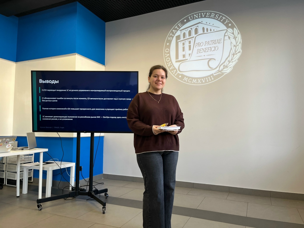 Зав. кафедрой информационных технологий и прикладной математики ИвГУ С.В. Данилова отметила, что сегодня цифровая трансформация немыслима без внедрения интеллектуальных систем. В своем выступлении она обозначила ключевые векторы для молодых ученых: междисциплинарность, связь с реальным бизнесом и активное использование ИИ для обработки больших данных и автоматизации сложных процессов.