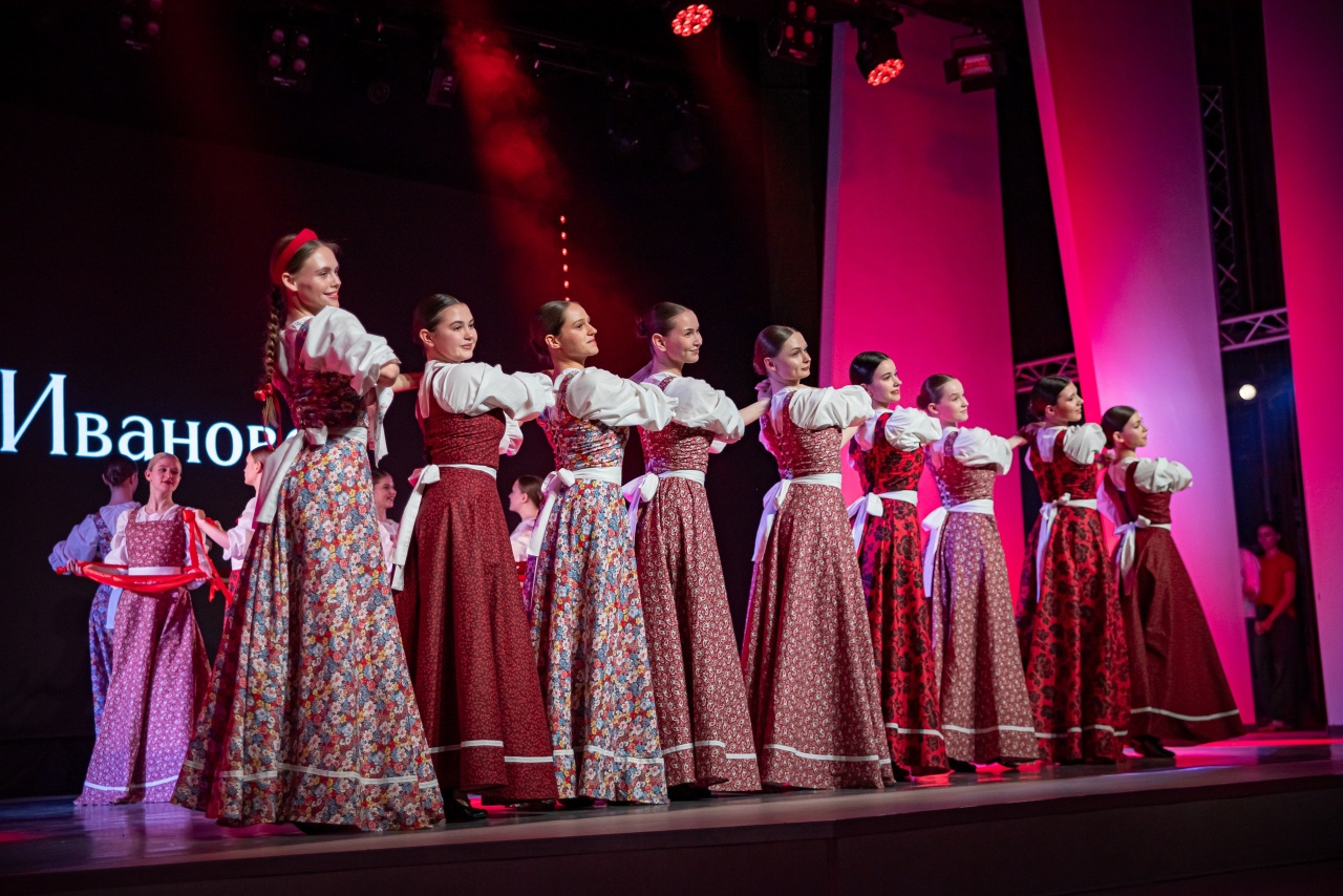 24 апреля состоялась премьера интерактивного спектакля ИвГУ «Один город - одна любовь», посвященного 155-летию города Иваново. На сцене центра «Солярис» оживали творческие картинки, олицетворяющие историю нашего города. Образ «ожившего герба» города Иваново, который исполнила Мисс ИвГУ 2025 – Валерия Бражникова, открыл спектакль, и через сотканные нити в исполнении педагогов-хореографов на сцене появлялись целые полотна ивановских тканей, из которых были выполнены коллекции костюмов. От большого ситцевого хоровода, в котором одновременно на сцене появились 17 девушек, до авторской коллекции, где в каждый костюм был заложен смысл, олицетворяющий малые города Ивановой области.