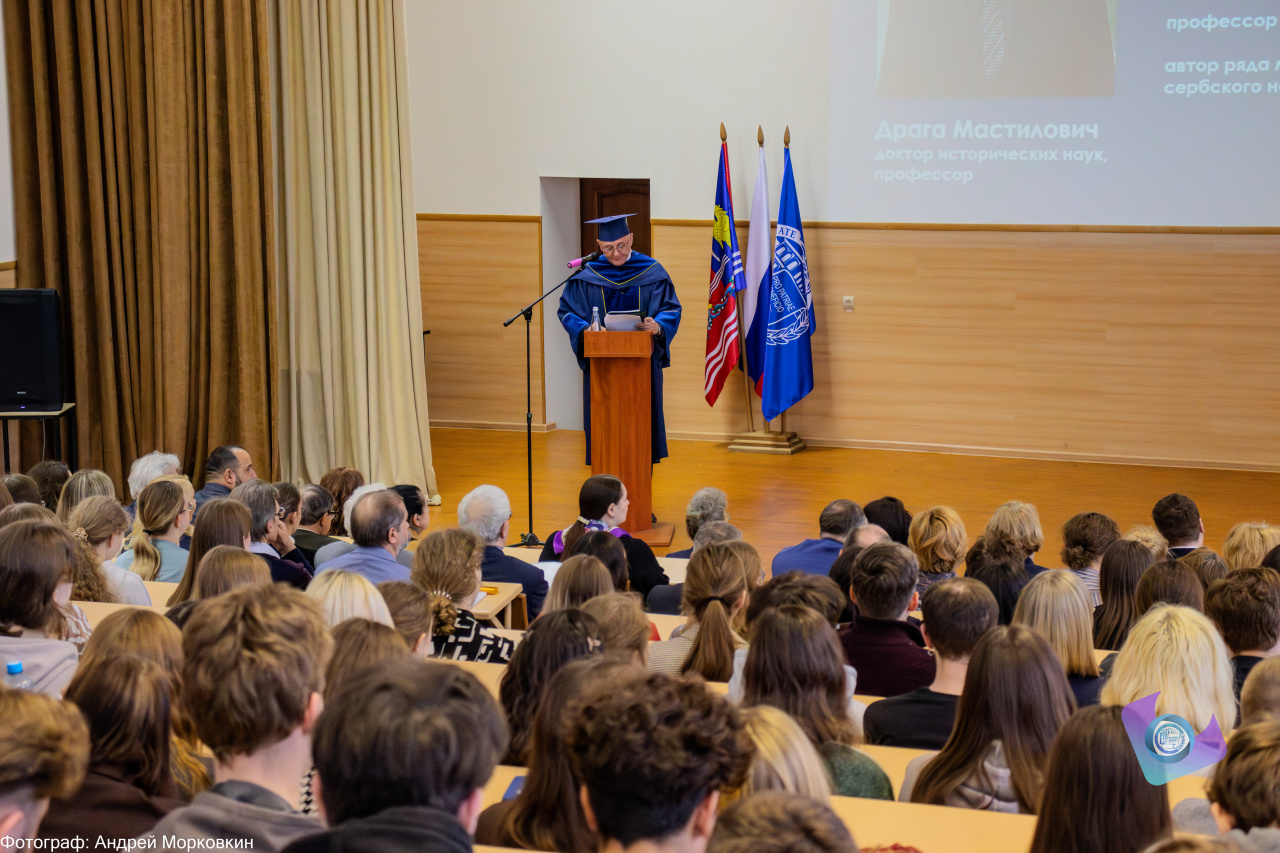 Приветствуя высоких гостей, ректор университета Алексей Александрович Малыгин подчеркнул: «Имя доктора исторических наук, профессора Мастиловича хорошо известно не только профессиональным историкам, но и широкой общественности. Драга Мастилович – автор многочисленных научных работ по Балканской и европейской истории XX века, включая вопросы антифашизма и отстаивания исторической правды в наше сложное время. В условиях мощнейшего давления со стороны западных идеологических центров Драга Мастилович открыто выступает против мифологизации, подлогов исторических фактов, искажения истории. Нельзя не отметить огромность и значимость работы, которую во многом инициирует и курирует Драга Мастилович – председатель Представительства Российского исторического общества в Республике Сербская, основатель и Президент Ассоциации историков Республики Сербской, член Комитета по истории Боснии и Герцеговины, Сербской академии наук и искусств в Белграде, член Комитета по историческим наукам Академии наук и искусств Республики Сербской. Вся многогранная деятельность профессора Мастиловича способствует сохранению русского культурного наследия в Сербии и Боснии и Герцеговины, сближению и взаимообогащению российской и сербской культуры и науки».