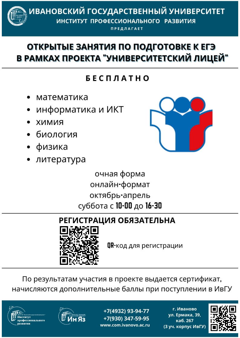 Интенсивные БЕСПЛАТНЫЕ курсы подготовки к ЕГЭ–2023 от Ивановского государственного университета! Заполняйте пробелы в знаниях и изучайте новое!