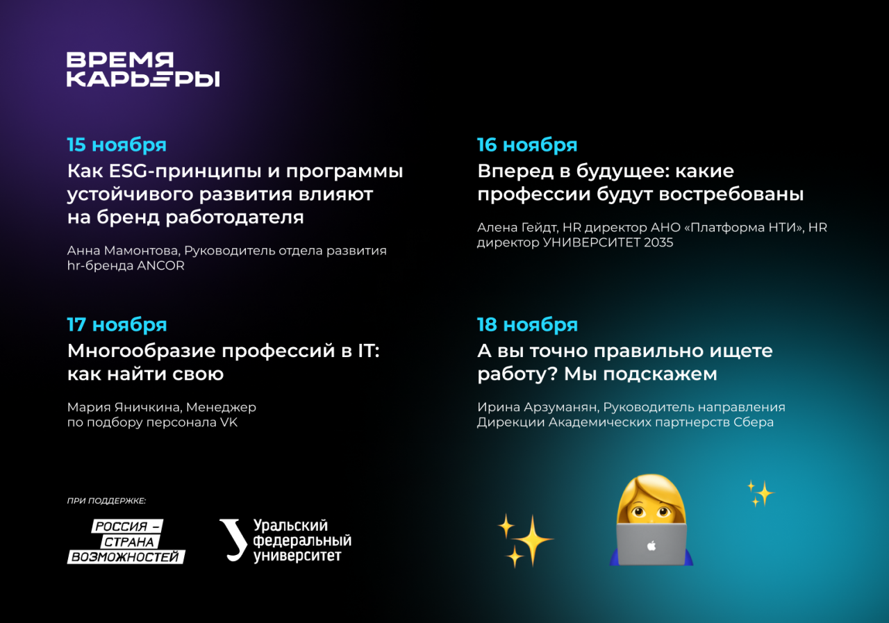Весь ноябрь проект «Время карьеры» совместно с Министерством науки и высшего образования Российской Федерации и президентской платформой «Россия – страна возможностей» проводят карьерный марафон в социальной сети ВКонтакте.