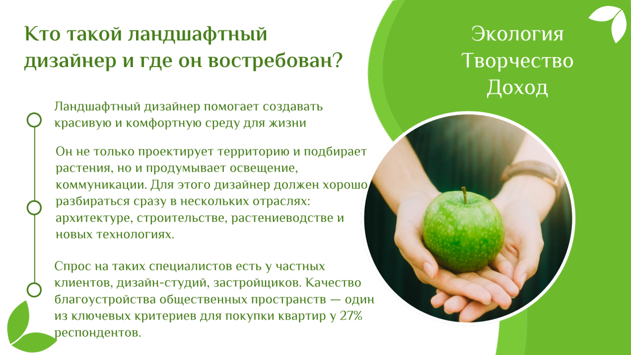 Кто такой ландшафтный дизайнер? Почему эта профессия считается модной? Какое отношение ландшафтный дизайн имеет к экологической повестке и культуре осознанного потребления? Обо всем этом мы подготовили информацию на карточках - читайте сами и делайте репост друзьям!!!