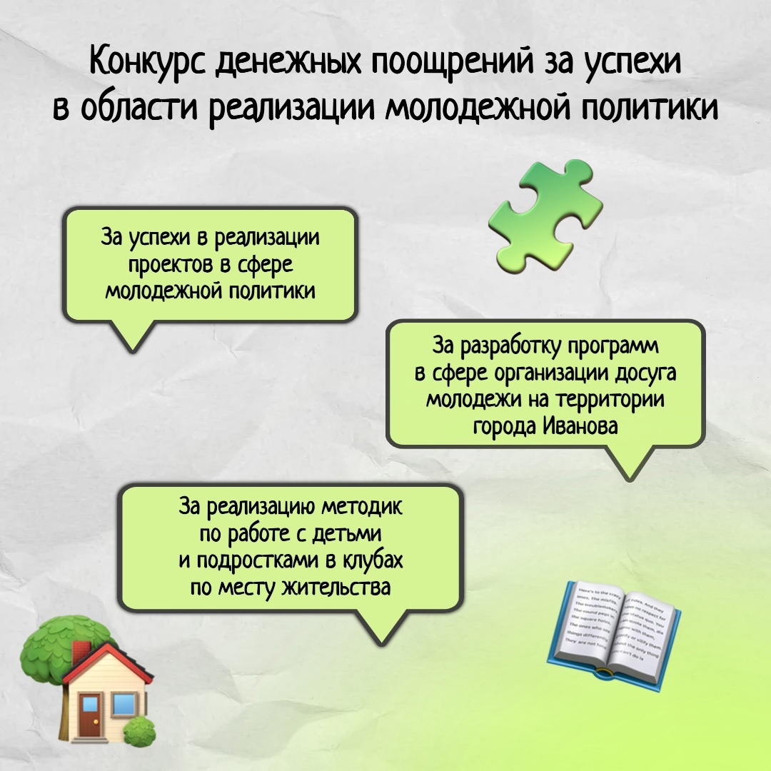 В конкурсах могут принимать участие граждане Российской Федерации в возрасте до 35 лет, зарегистрированные и проживающие на территории города Иваново.