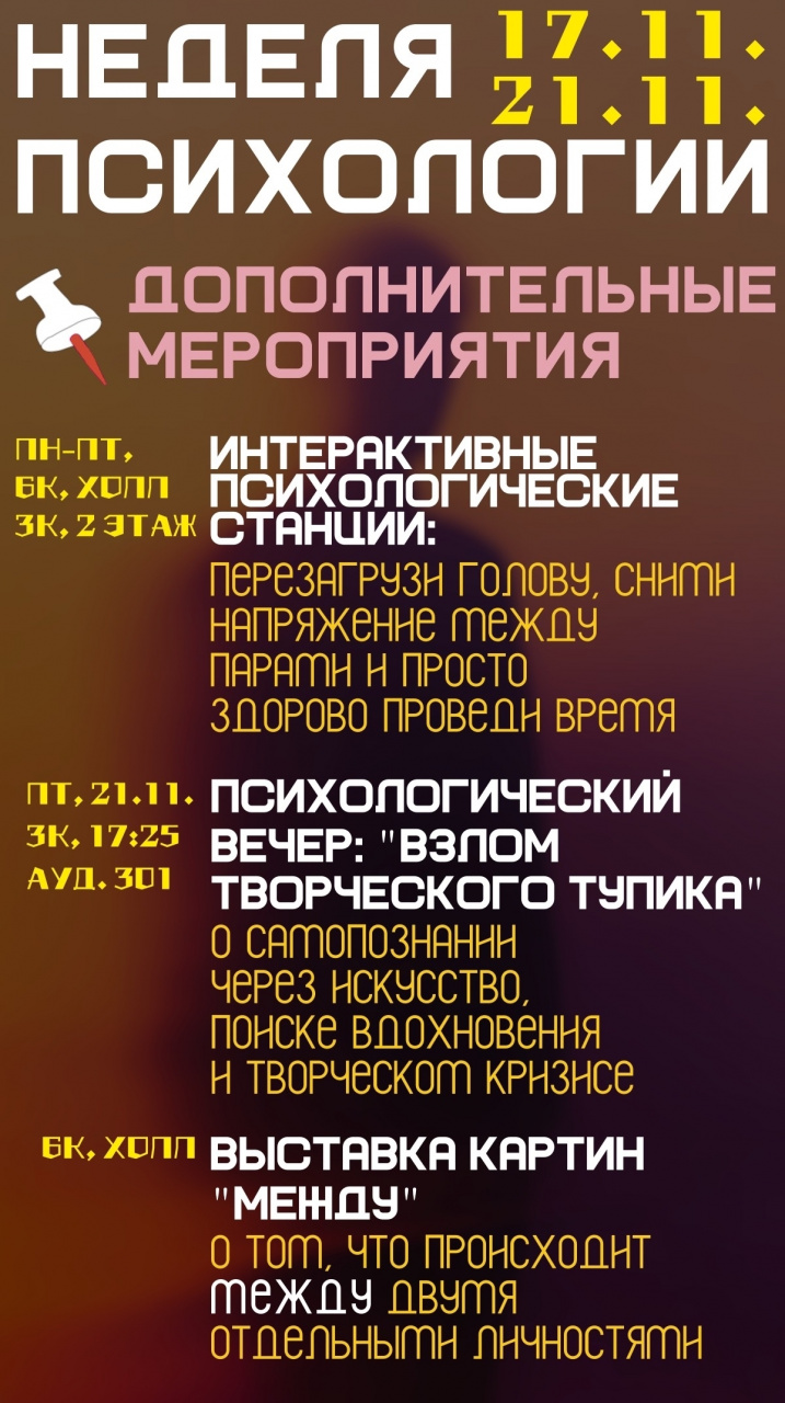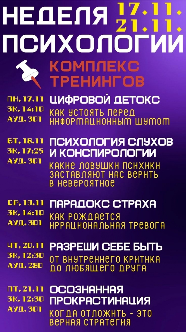 Смотри расписание и присоединяйся к захватывающему событию - пусть психология зазвучит для тебя по-новому.