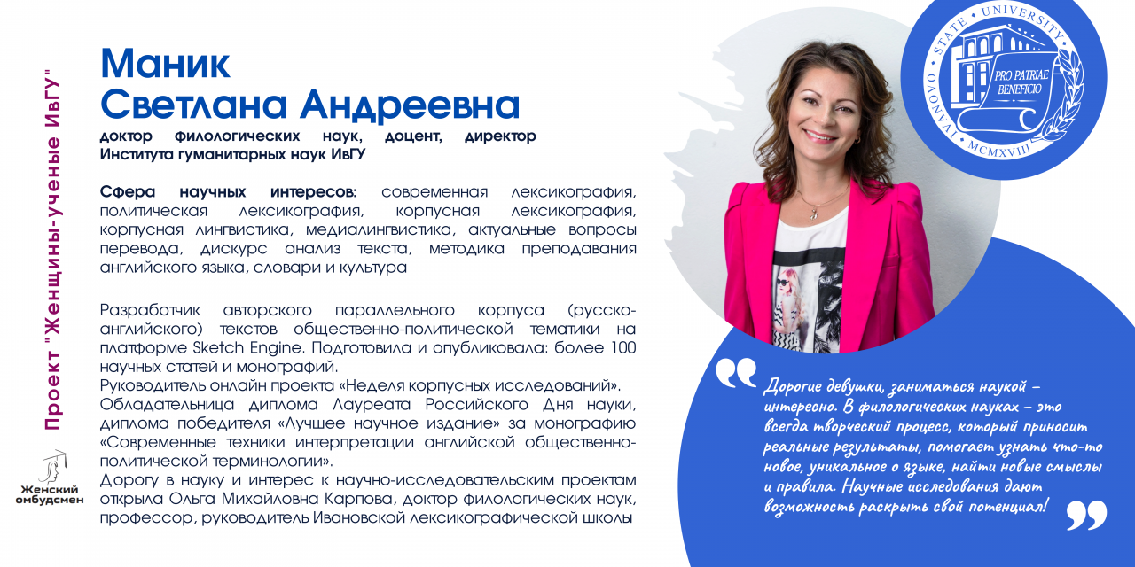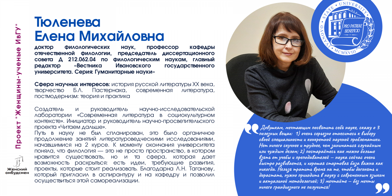 Сегодня мы хотим рассказать о пятнадцати женщинах-ученых ИвГУ, которые возглавляют институты, лаборатории и научно-образовательные центры, совершают научные открытия, преподают и меняют наши представления не только о мире вокруг, но и об академической карьере. Эти замечательные женщины самим своим существованием опровергают никак не изживаемые до конца и, что греха таить, порой просто репрессивные гендерные стереотипы.