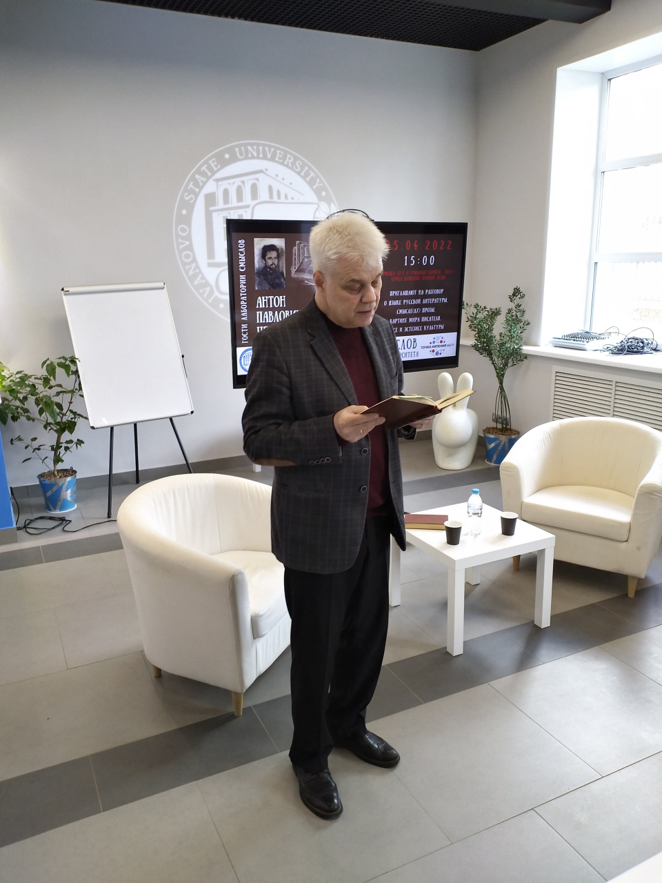 Николай Венальевич читал пасхальный рассказ А. Чехова «Студент». Он предварил прочтение интересным эпизодом из переписки А. Чехова, который задал личностный дискурс смыслов писателя. Итогом филолого-философского целеполагания стал совместный (со студентами) герменевтический анализ рассказа, последовательно осуществленный с трех (а быть может, и больше) различных по глубине и масштабности точек зрения. Приятно поразила включенность слушателей в построение описательной модели текста, отличавшаяся широким кругозором и эрудицией.