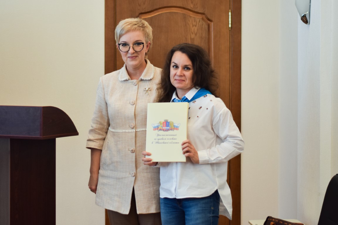 Консультант-юрист службы Уполномоченного по правам человека в Ивановской области А.Н. Филькина передала участникам Форума приветствие от С.А. Шмелевой и всей команды Уполномоченного и отметила, что площадка этого ежегодного Форума позволяет консолидировать усилия органов власти, научного сообщества, бизнеса и общественности для решения неотложных проблем. А.Н. Филькина вручила Благодарственное письмо председателю Первичной организации профсоюза обучающихся ИвГУ К.А. Кумировой («За оказание адресной помощи студентам Ивановского государственного университета в защите их прав и законных интересов»).