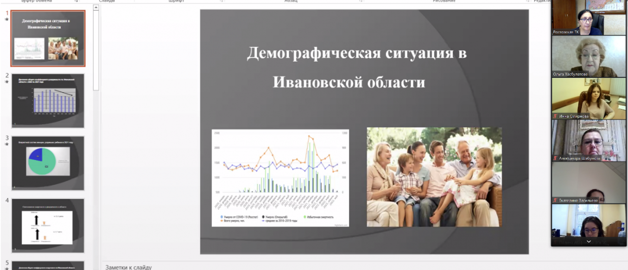 1 октября 2022 года в рамках симпозиума состоялось заседание Научного совета Отделения общественных наук РАН «Демографические и миграционные проблемы России». О.А. Хасбулатовой, членом Научного совета «Демографические и миграционные проблемы России» ООН РАН, и Н.С. Рычихиной, кандидатом экономических наук, доцентом Ивановского государственного университета, был представлен научный доклад на тему «Демографическая ситуация в Ивановской области».