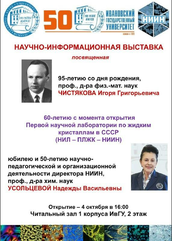 - Усольцева Н.В. К 95-летию профессора Игоря Григорьевича Чистякова // Жидк. крист. и их практич. использ. 2024. Т. 24, № 3. С. 6–13. DOI: 18083/LCAppl.2024.3.6 (WoS, Scopus Q4, ВАК, РИНЦ)