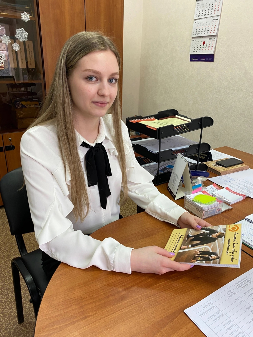 3 февраля прошла встреча начальника центра «Карьера» Коробовой Ольги Олеговны со студенткой 2-го курса направления подготовки 38.03.03 Рыжко Анастасией. Студентка отметила, что не сомневается в выбранной профессии и хочет развиваться и быть лучшим специалистом в выбранном направлении. Предполагает работать с людьми, заниматься процессами организации и координации на предприятиях любой сферы.