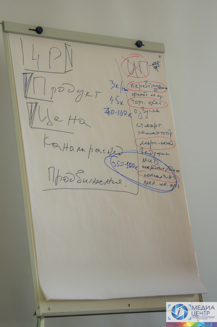 А.Е. Кирьянов 24 марта провел и свое мероприятие – тренинг для студентов старших курсов «Анализ специалиста через призму концепции Маркетинг-микс». Алексей Евгеньевич рассказал студентам об одной из самых известных и популярных концепций маркетинга – концепции «4p» (пи), объединяющей такие элементы, как продукт (product), цена (price), канал распределения (place), продвижение (promotion). Все эти элементы необходимо учитывать при составлении маркетингового плана компании.